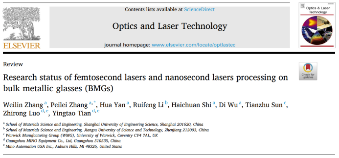 近日,上海工程技術大學材料科學與工程學(xué)院張培磊(lěi)教授領導的國際研究團隊(duì),在光學與激光領域(yù)著名期刊Optics & Laser Technology發表題為“Research status of femtosecond lasers and nanosecond lasers processing on bulk metallic glasses (BMGs)”的綜述論文(了解詳情點擊閱讀原文)。