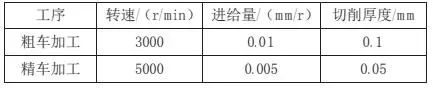 而法蘭與軸承外(wài)圈的配合麵SφC 0-0.007mm,需要在滿足自身精度和表麵粗糙度值R a=0.2μm的同時,與φ(A±0.02)mm互(hù)為基(jī)準,一起滿足定位孔φ0.02mm同軸度和位置(zhì)度的包容要求(qiú)。分析可知,大切削量(liàng)條件下,保證各個尺寸的位置精度和幾何公差是法蘭盤加工的難點,為滿足各個(gè)尺寸自身的平麵度和表麵粗糙度條件,加工過程(chéng)中切削(xuē)參數的選擇就顯得尤為重要。