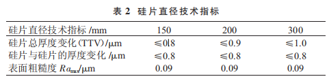 1.3.2 超精密磨削研究現狀 (1)矽片自旋轉磨削。采用略大於矽片的工件轉台,通過真空吸(xī)盤(pán)每次裝夾一個矽片,矽片的中心(xīn)與(yǔ)轉台的中心(xīn)重(chóng)合,杯形金剛石砂(shā)輪的工作麵調整到矽片的(de)中心位置。磨削時,矽片和砂輪繞各自的軸線回轉,砂輪隻(zhī)進行軸向進給。在超精密磨削(xuē)中,金剛石砂輪的修(xiū)整(zhěng)情況對零件的加工質量有決定(dìng)性影(yǐng)響(xiǎng)。其修整過程主要包括修(xiū)平 / 結合(hé)劑去除和去尖(jiān),修平一般采用金(jīn)剛石砂(shā)輪磨削相對軟質物(wù)質。結(jié)合劑去除主要采 用電解法和接觸放電法。目前,采用矽(guī)片自旋轉磨(mó)削方(fāng)法加工直徑 150~ 400 mm(6~16 英寸)矽片,可實現矽片的正麵超精(jīng)密磨(mó)削和背(bèi)麵磨(mó)削減薄,所達到的技術指標見表 2。